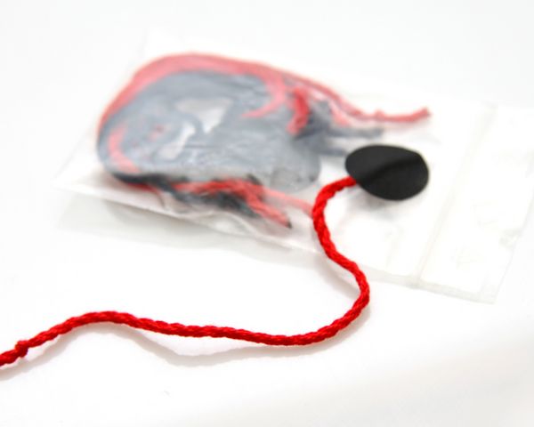 Fünf paar Windfäden in Rot und Schwarz inkl. Klebetuchkreise.