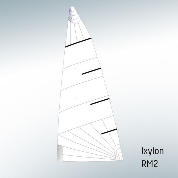 Radial cut Ixylon mainsail for racing use. The radial head and the radial cut clew direct the forces even better into the sail. The result of the combination of a more resinated, stiffer cloth, is a sail section that keeps a perfect shape.